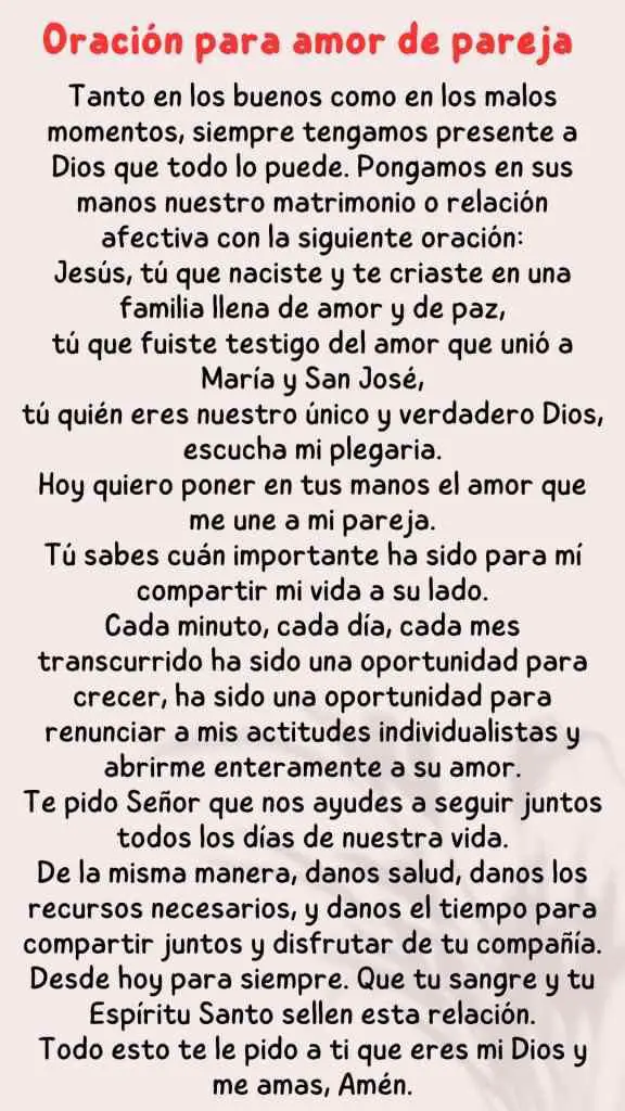 Una oracion para deshacer el divorcio y restaurar el matrimonio es una expresión de esperanza y fe en la posibilidad de una segunda oportunidad. Incluso cuando la separación parece definitiva, la oración puede ayudar a encontrar la fuerza necesaria para iniciar el proceso de reconciliación. La oracion para recuperar mi matrimonio puede ser un punto de partida para sanar heridas, renovar el compromiso y construir una relación más fuerte y resiliente. Este proceso exige esfuerzo, paciencia y un compromiso inquebrantable de ambas partes.