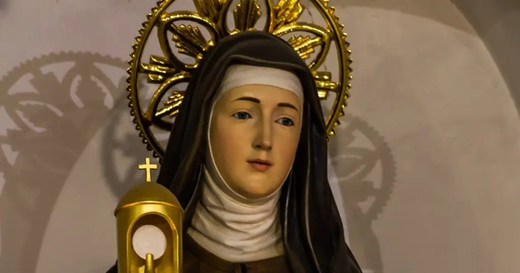 Además, se cuenta que en una ocasión, cuando un ejército de sarracenos amenazaba con invadir Asís, Clara, con una fe inquebrantable, tomó el Santísimo Sacramento y lo colocó en la ventana del convento. Los invasores, al ver la luz que emanaba del sacramento y la figura de Clara orando, se retiraron sin causar daño alguno. Este acto de valentía y fe es recordado como un testimonio del poder de la oración y la protección divina.