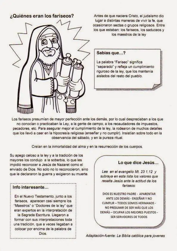 El presente texto expone la historia y el contexto de los fariseos, una influyente secta judía del período del Segundo Templo. Analizaremos sus creencias centrales, que incluían un estricto apego a la ley mosaica (tanto escrita como oral) y una visión escatológica que abarcó la resurrección de los muertos y la existencia de ángeles y demonios, contrastando con las perspectivas de otros grupos contemporáneos como los saduceos. Veremos también su impacto en la vida social y política de Judea, así como su compleja relación con Jesús y el movimiento cristiano naciente.