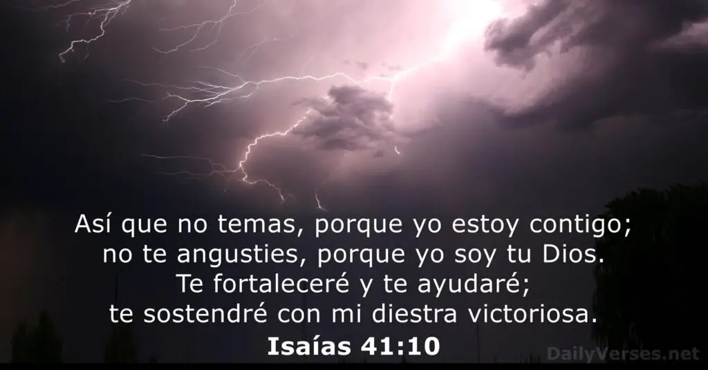 Isaías 41:10 nos anima con estas palabras: No temas, porque yo estoy contigo; no desmayes, porque yo soy tu Dios; te fortaleceré, sí, te ayudaré, te sostendré con mi diestra victoriosa. Este es un mensaje directo de consuelo y fortaleza divina en medio de la adversidad.