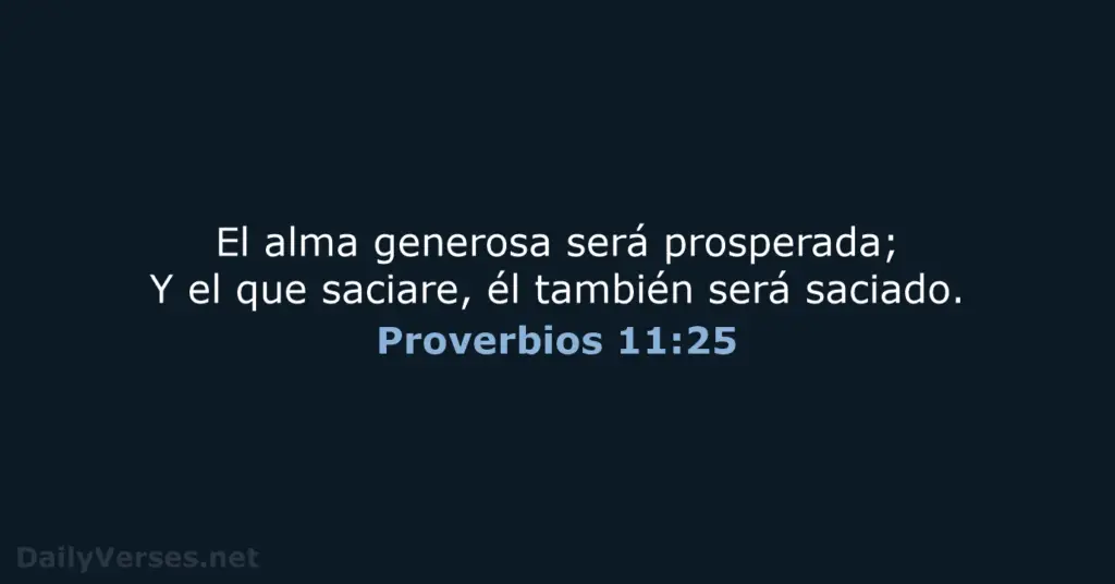 Proverbios 11:25 dice: El alma generosa prosperará; el que riega, también será regado. Este versículo nos muestra una sencilla verdad: cuando damos, no perdemos, sino que recibimos a cambio. La generosidad se compara con regar una planta; al hacerlo, la planta crece y florece, y así también, nuestra propia vida se enriquece a través de la generosidad.